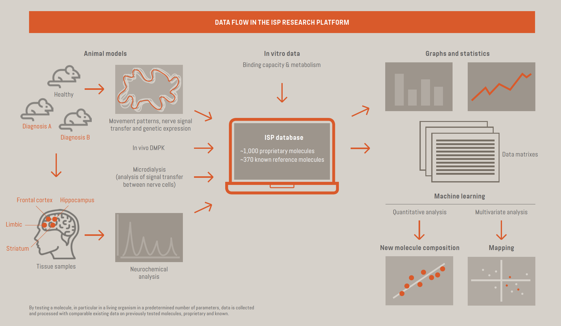 IRLAB använder en unik, resurseffektiv forskningsmetod kallad ISP (Integrative Screening Process) för att generera bolagets läkemedelskandidater. Den egenutvecklade ISP-plattformen är byggd ett på systembiologiskt synsätt med en omfattande, standardiserad, och världsunik databas över CNS-substanser och klasser som samlats in under 25 års forskning.